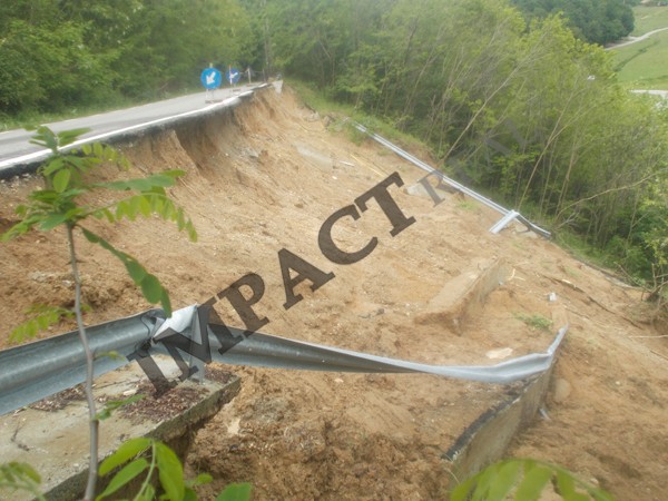 Drum proaspăt asfaltat, rupt de alunecările de teren